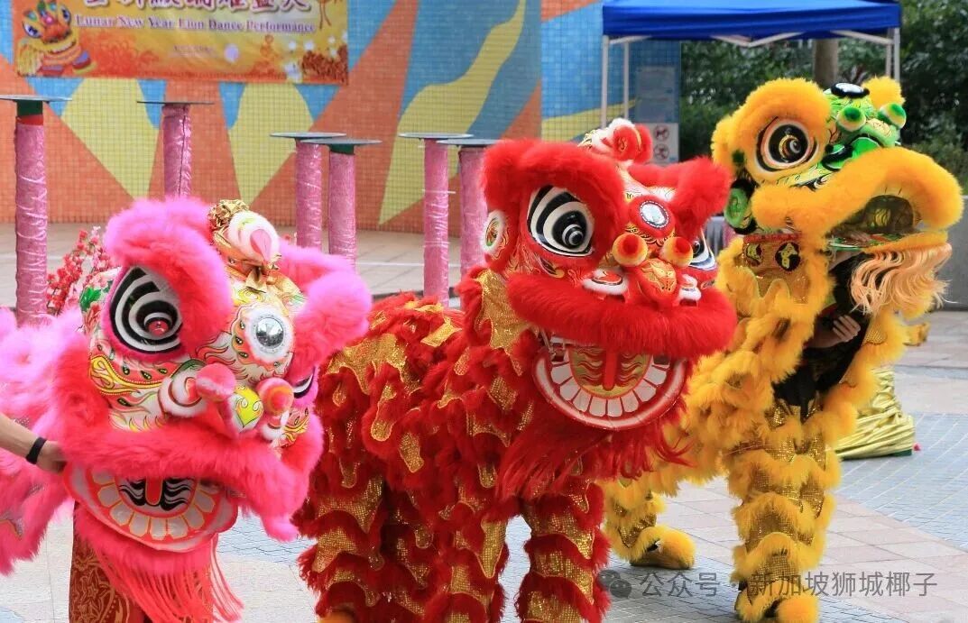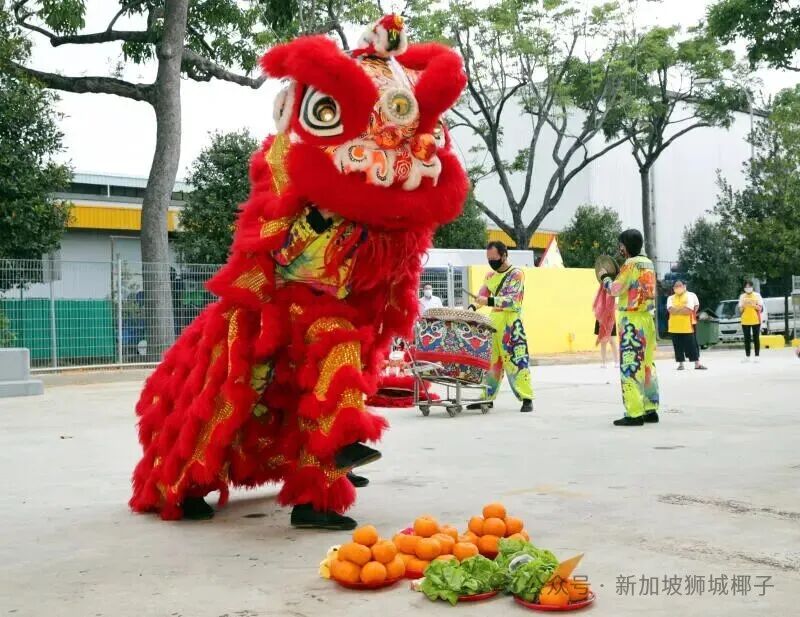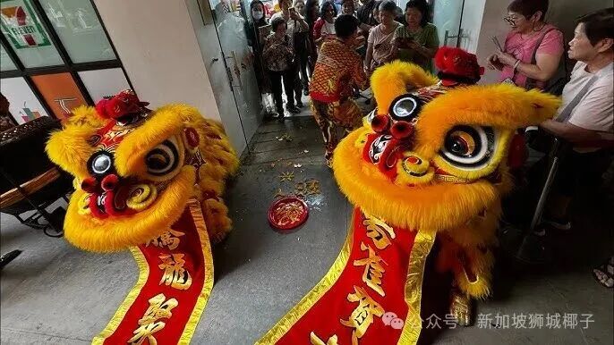 舞狮分南北派,在新加坡以南狮为主,造型似龙、动作刚劲有戏,采青环节更象征招财纳运。