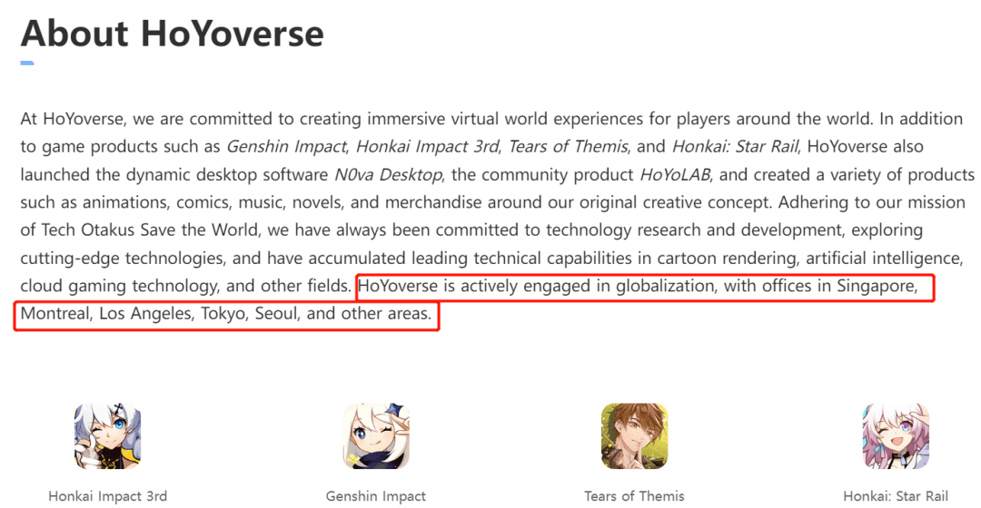 现在,米哈游旗下的包括《原神》在内的多款游戏发行商已经改成了Cognosphere。而在HoYoverse的官网中,新加坡被介绍为公司全球化布局中“重要的一环”。