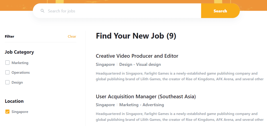 截止到上个月10月26日,其招聘网站上新加坡地区只有9个岗位,且大多都是针对东南亚,印尼地区、越南地区一些游戏的营销推广岗位,以及游戏视觉设计和游戏产品运营岗位。
