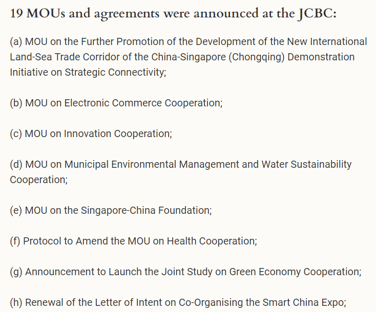 这两天,中国高层到访新加坡,和新加坡政府官员进行了一系列的合作磋商,并签署了19项合作协议。