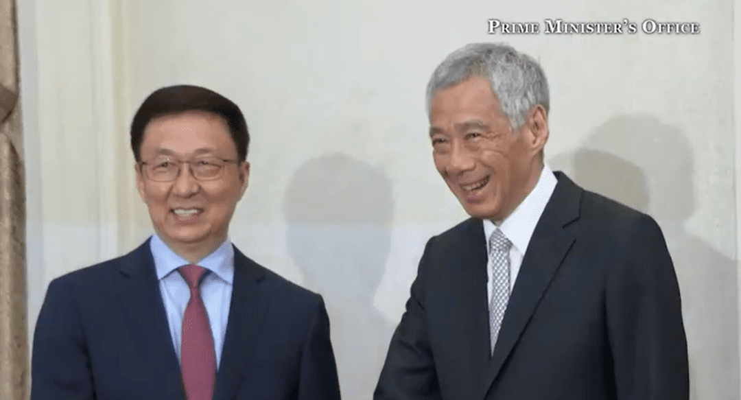 在与新加坡副总理兼经济政策统筹部长王瑞杰的会面中,他代表中国签署的合作协定,具体内容包括加强数码和永续发展方面的合作。