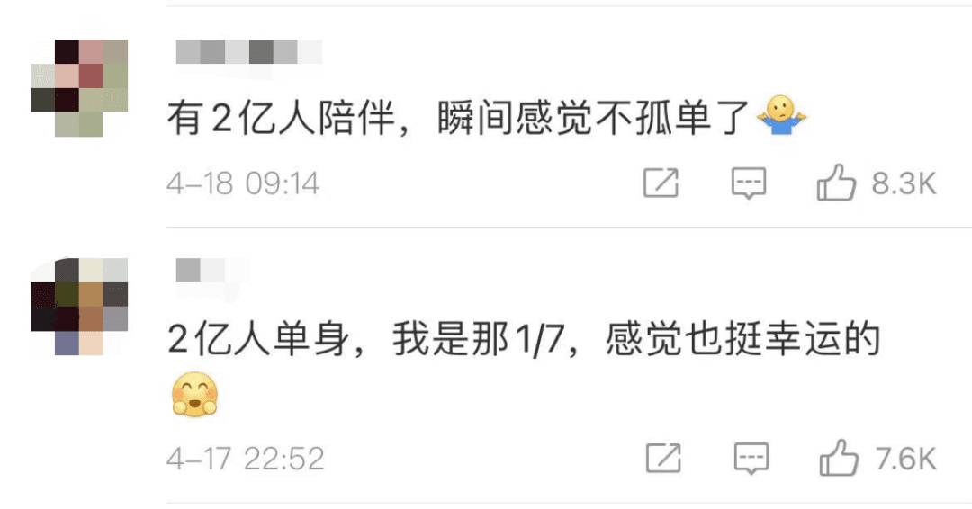 在#中国超2亿人单身#话题冲上热搜之后,本以为网友会感到担忧,结果评论竟然是一水的“庆祝”??