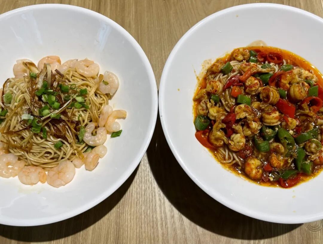 Master Chef Jia 颠覆传统!Wok-Fried Prawns Bee Hoon(19.40 新元)取代经典海鲜白蜂黄,炒锅香气浓郁,3 只鲜弹大虾浸虾汤,一口上瘾,性价比之选 Shrimp Noodle(起价 7.40 新元),加猪油能增添独特风味,口感更绝。