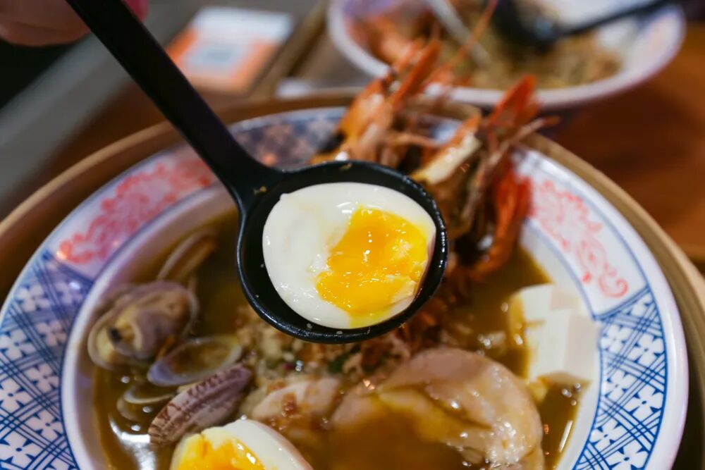 Cuppage Plaza 的隐藏宝石 Ebi Bar,虾控必打卡!招牌 Modern Prawn Noodle(15.90 新元起),弹簧拉面配焦虾浸浓郁虾汤、 Ebi Bar Hokkien Noodles (19.80 新元起)搭茶虾同样热门,想吃轻盈口可选 Pan-Seared Chicken Noodles(10.80 新元起)。