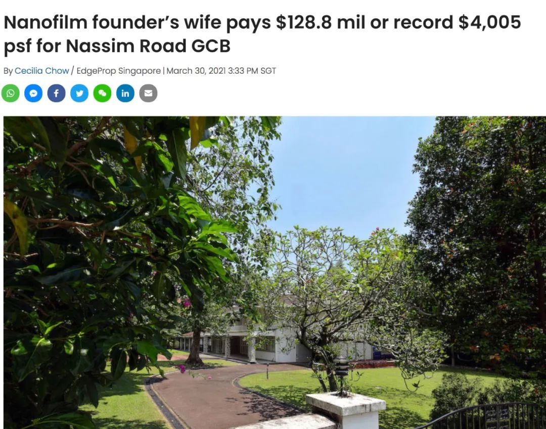 但是今天榜单出炉,大家才发现,原来2021全新加坡售出最贵的房子是被一个中国新移民买走了!