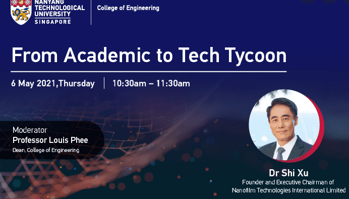 到了1999年,身为南洋理工大学(National Technological University)教授的他毅然放弃了从事了九年之久的教学工作,并用30万新元开创了纳峰科技公司(Nanofilm)。