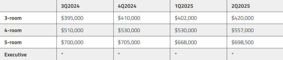 值得关注的是,三房式组屋的中位数价格在2024至2025年间上涨近20%。这主要得益于Forfar Heights、SkyParc @ Dawson及Dawson Vista 的SERS重建置换组屋于2025年初达到最低居住年限(MOP)。