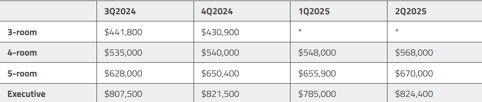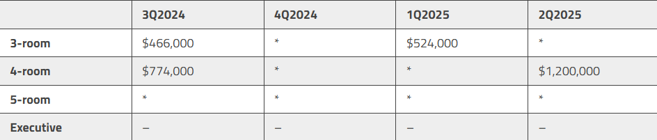 大巴窑过去四个季度的转售中位数价格数据呈现出值得关注的趋势。与三房式及五房式组屋相比,大巴窑四房式组屋转售价格在过去四个季度出现显著增长。这主要得益于比达达利的几个HDB项目——Alkaff Vista、Alkaff LakeView和Alkaff CourtView三个BTO项目相继于2024年末及2025年初达到最低居住年限。
