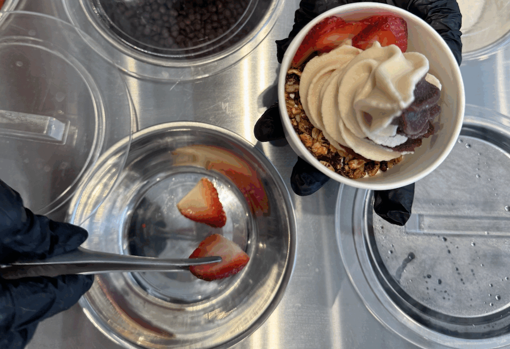 以澳洲鲜奶制作,10 种风味可选,低卡、98% 无脂且富含益生菌,按重量计价(每 100 克 3.50新元)。推荐 Salted Butterscotch 风味,甜咸平衡,和 Matcha 风味搭配也很和谐。