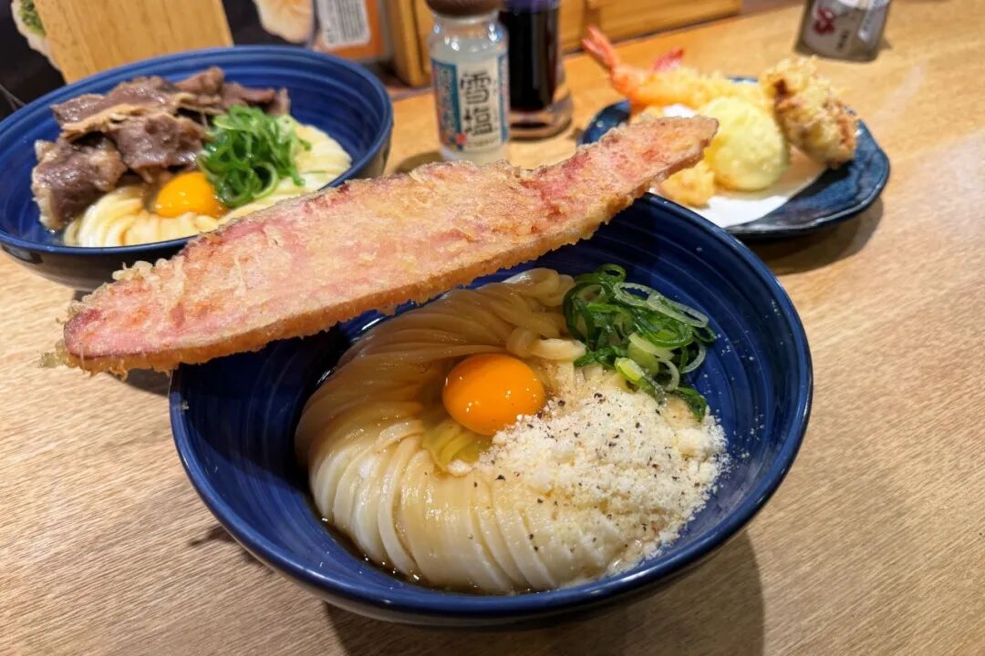 招牌 Carbonara Udon(24新元 ),浓厚乌冬裹着芝士蛋香的柔滑酱汁,搭配蓬松培根天妇罗,风味浓郁 decadent,创意与经典兼具,盛名不虚。