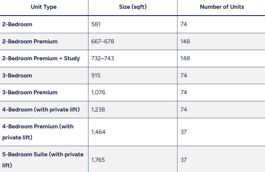 Skye at Holland的指导性开盘价格(不包括5卧室单位)如下: