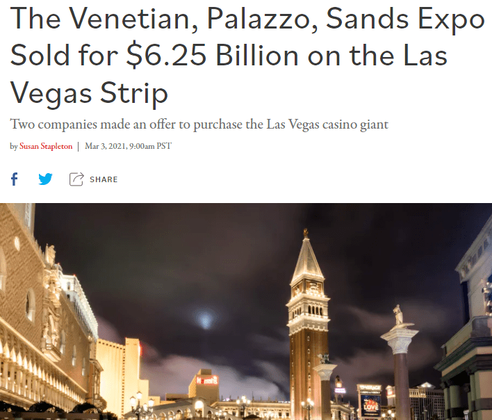 特别是2021年3月,金沙集团宣布将以62.5亿美元出售拉斯维加斯的博彩及非博彩资产,