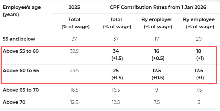 如果你处于55-65岁年龄段,需要调整现金流以适应实得工资的减少。而雇主应在2026年后政府补贴结束时,开始将更高的公积金成本纳入人力预算。