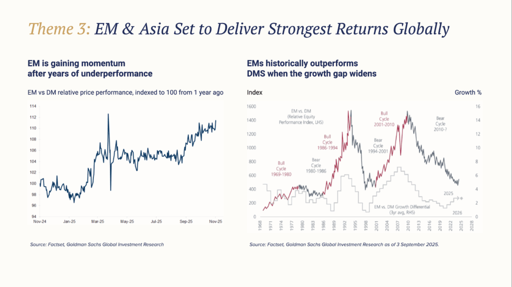 只要投资者愿意为更强的盈利增长和有利的货币动态接受更高波动性,那么应将新兴市场和亚洲更多地视为核心多元化配置,而非战术性交易。