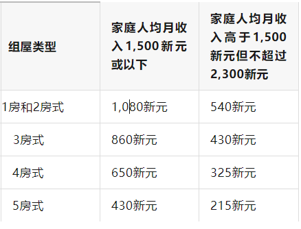 如果你是年满65岁的新加坡公民,并且正在领取社区关怀计划长期援助,则每季度可获得430新元,不论住房类型和家庭月收入如何。反之,则参考下图: