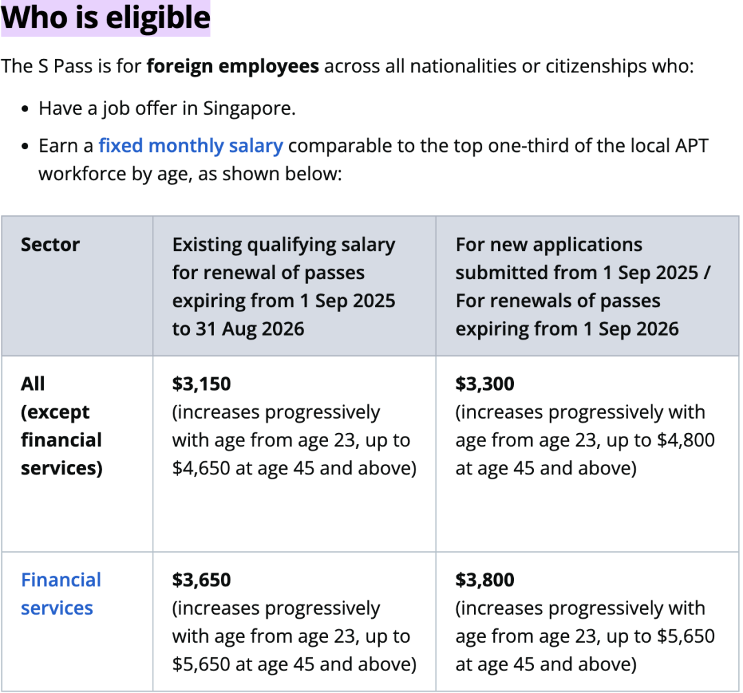 最低薪资涨到 S$3,300(多数行业)