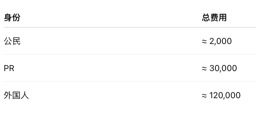 因此,新加坡的身份贵,不是抽象贵,是可以一项一项算出来的现实贵。
