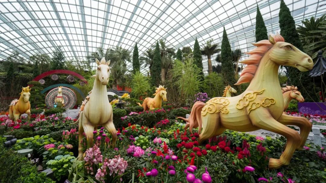 踏入星耀樟宜机场 Canopy Park 的 Petal Garden 跃马迎春,鸡冠花、杜鹃、海棠等繁花盛放,满园春色藏绝美全家福打卡点,定格新加坡新春温馨瞬间。