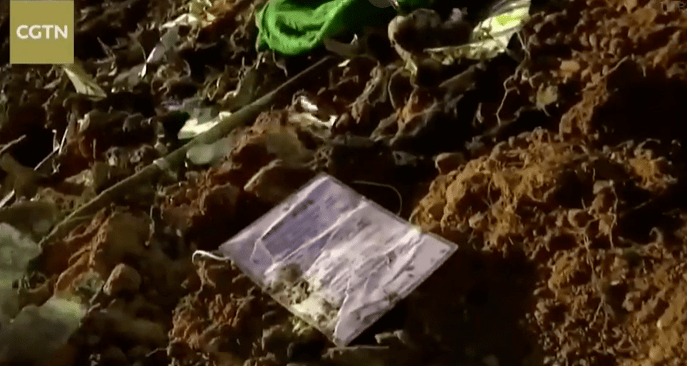 被找到的飞机残骸,有些印有明显的东航机身涂装。因此,搜救队也已基本确定了飞机的主要撞击地点。