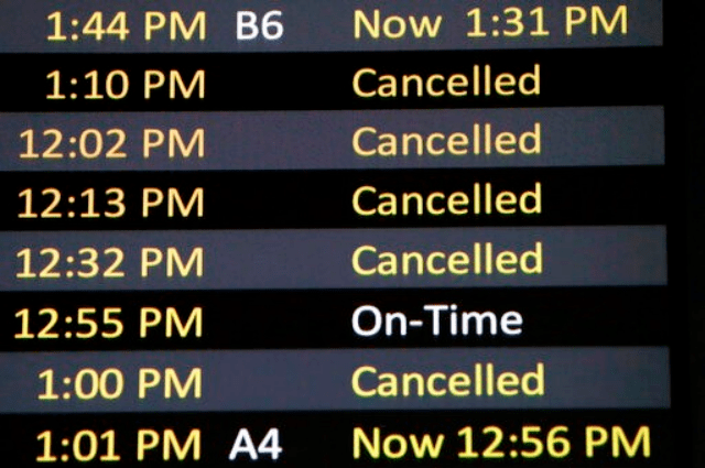 有2432个国内航班或在美国起飞或结束的国际航班被取消,几乎与周六期间取消的2749个航班一样多。