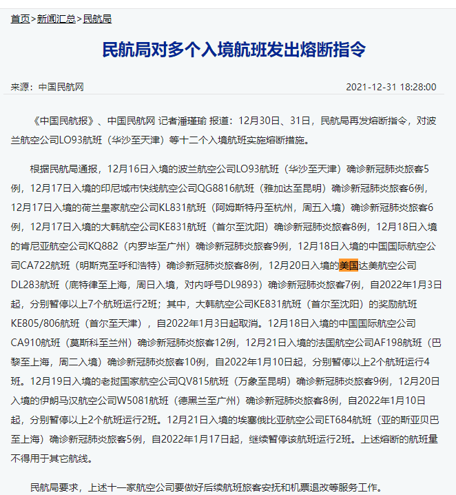 整个1月份国际航班不多了,已知美中航线取消及熔断航班已达十多个班次。