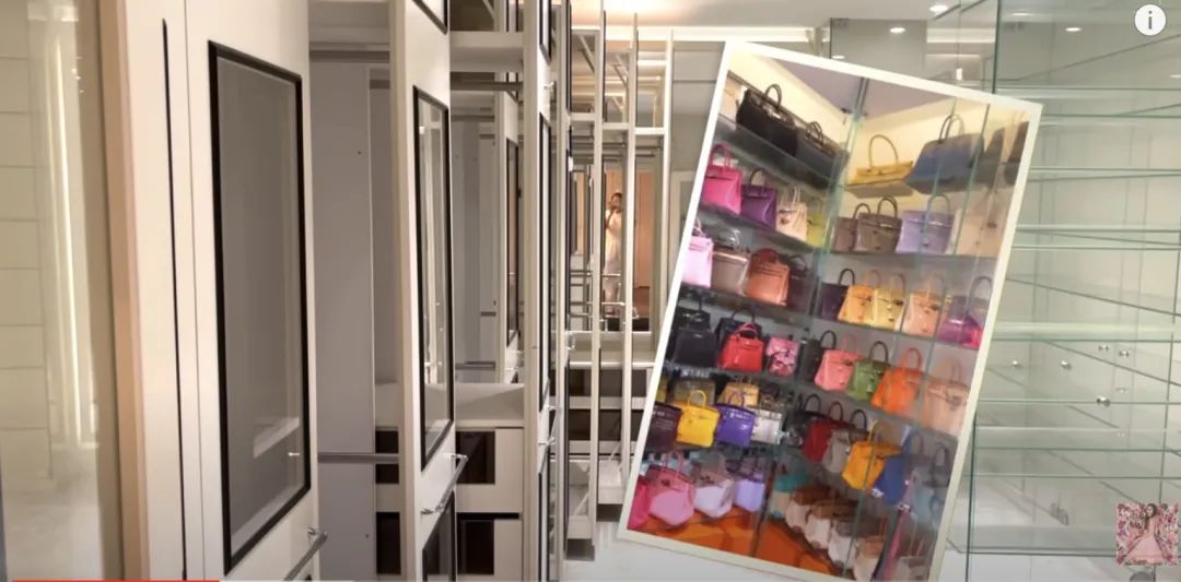 而一度让她红遍全球的爱马仕包包墙,从她拍的片段来看,已经从旧家打包收走了。↓