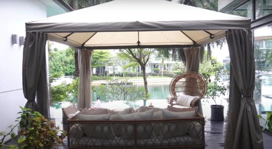 泳池边上还有一个度假风的凉亭。↓