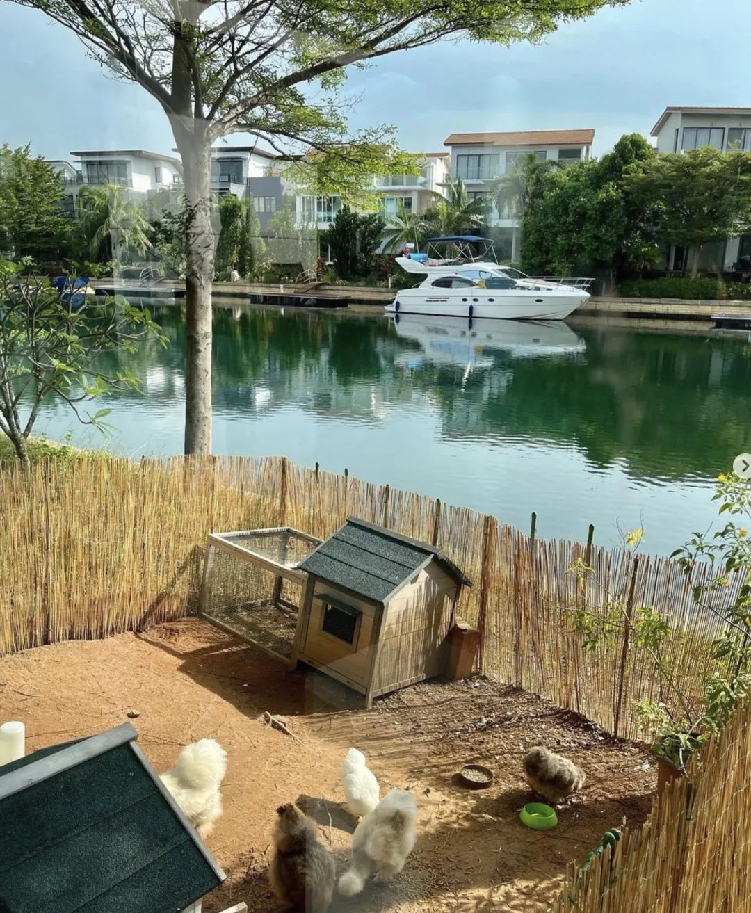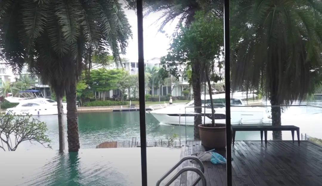 人坐在客厅,一眼望出去就是游艇。↓