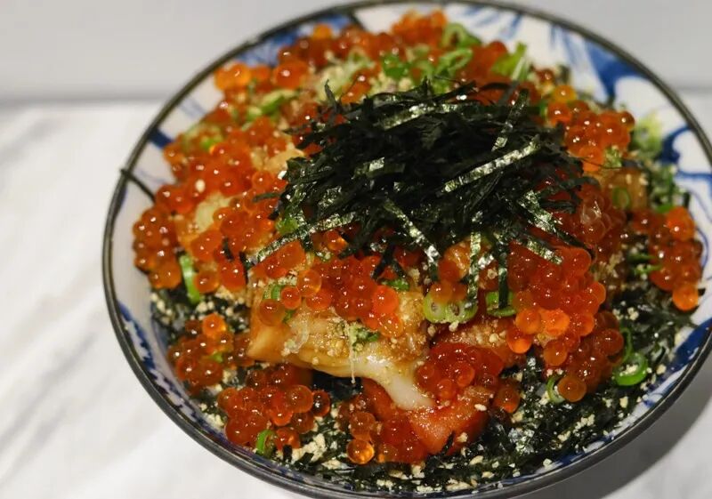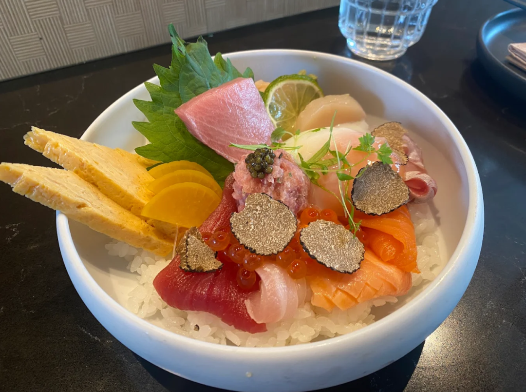 招牌 Tamago Moon Chirashi(21.80 新元)搭配生鱼、微烤鱼肉及煎制薄荷蛋黄酱玉子,另有松露烤蒜香辣椒等特色选择,风味十足。