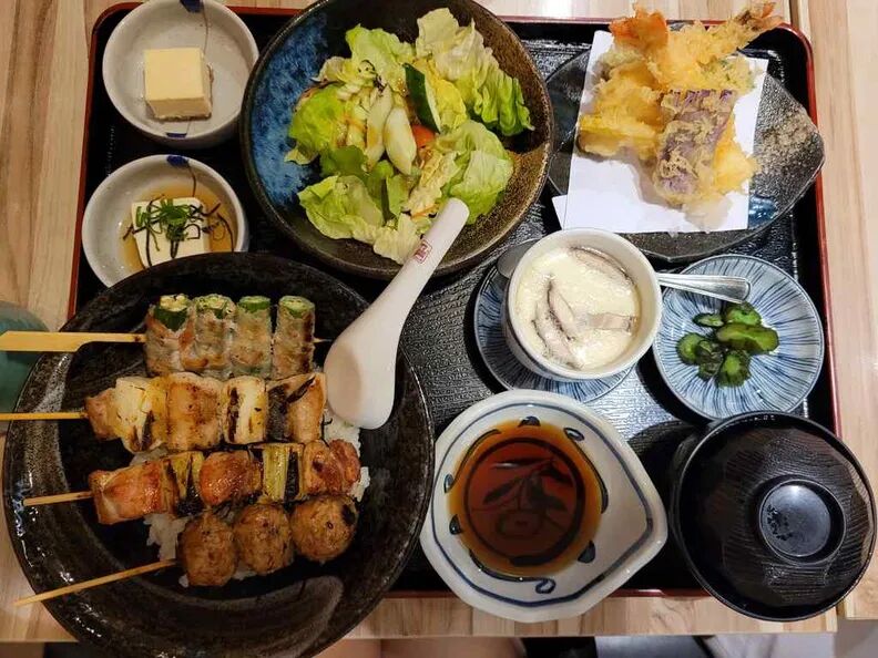 在日本,下午泡烧鸟店、现点现烤各式鸡肉串是必体验的用餐乐趣,Nanbantei Japanese Restaurant在家门口就能解锁,烤串起价 4.90 新元,还有 Hamachi Sashimi(25 新元)、Wagyu Roast Beef Don(30 新元)等丰盛餐品可选。