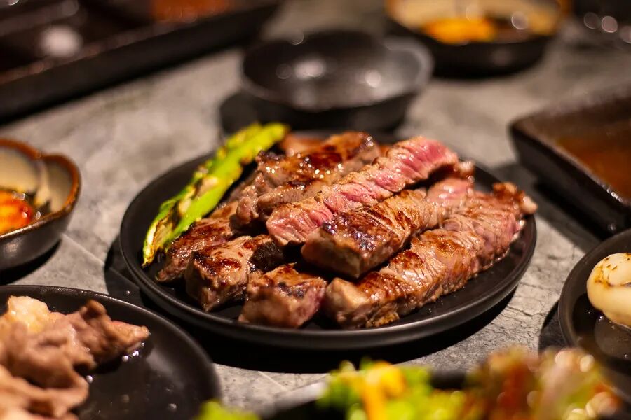 Hanjip 韩式烤肉店浪漫又过瘾,推荐Wagyu Striploin(S$88) 、USDA Prime Boneless Short Rib(S$52),品质和味道都在线,泡菜饼、芝士蛋卷等小菜超搭,还有参鸡汤、部队锅,吃肉约会首选。
