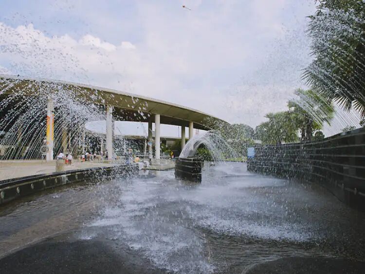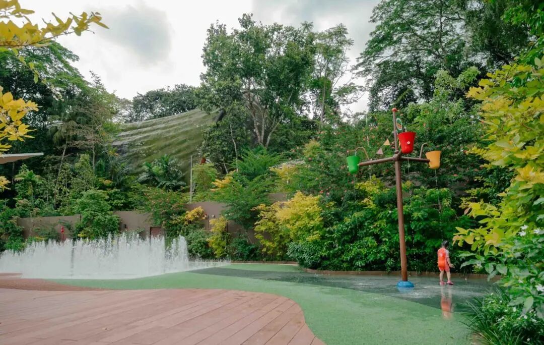 Clusia Cove at Jurong Lakeside Gardens,园内的Clusia Cove是超赞的湿润仙境,30 厘米深的巨大浅池布满岩石,孩子可攀爬嬉戏,还能体验潮汐水流、操控水闸。这里采用闭环净水系统,经生物净化与紫外线消毒,水质安全放心