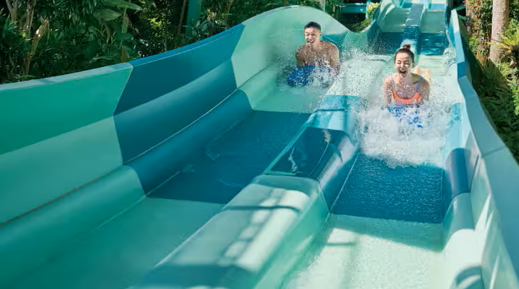 东区热门的 Wild Wild Wet 水上乐园,是适合畅玩一下午的好去处!这里有新加坡最陡峭近垂直自由落体滑梯、时速 70 公里的 “鱼雷” 等刺激项目,也有懒人河、波浪池,部分设施需 4 人组队,不足可拼友。