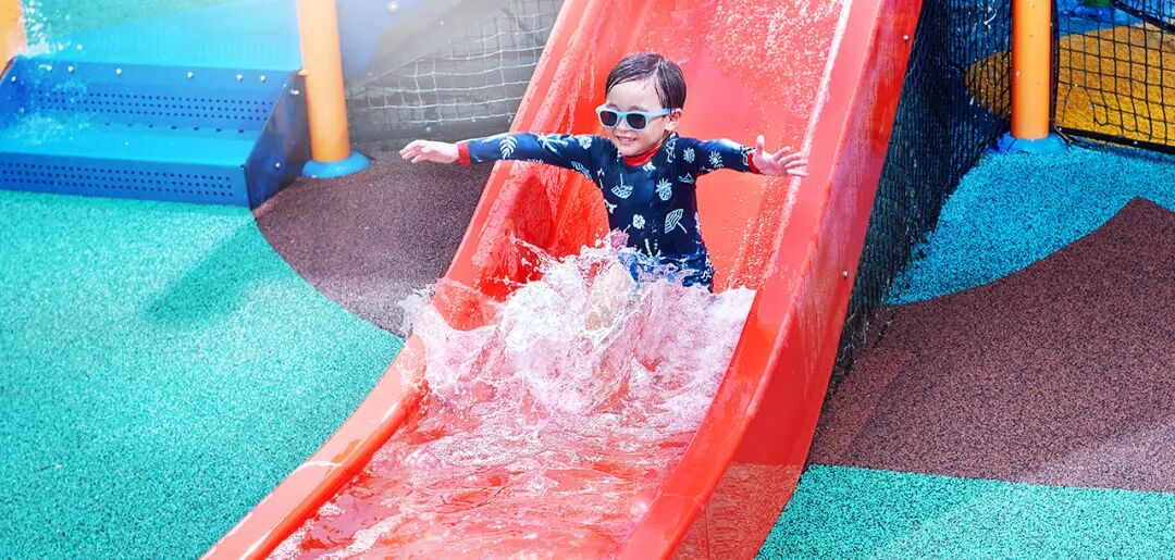 Coastal PlayGrove at ECP是大型户外水上游乐场,拥有四层高塔楼和巨型滑梯,湿区设两个迷你游乐池,幼童可涉水、家长能浸脚降温,侧边小水柱还会温柔喷射,趣味十足