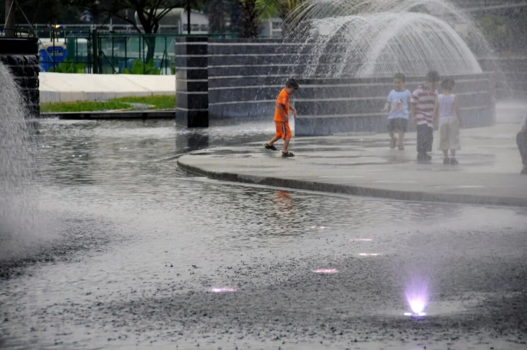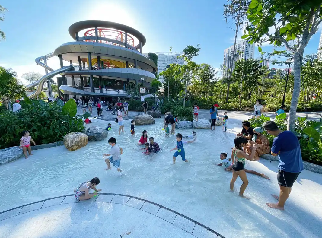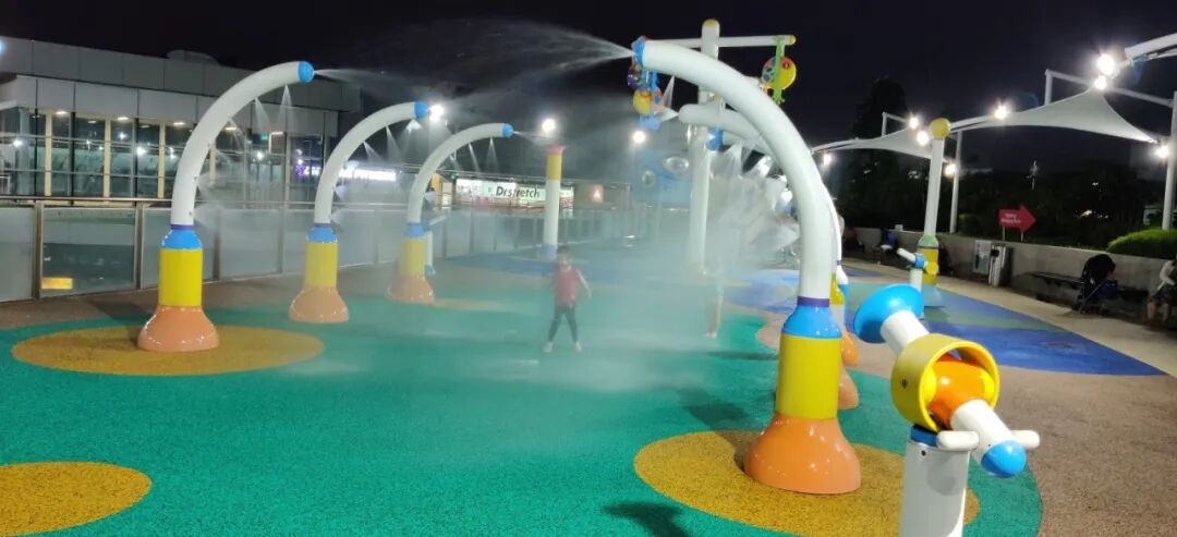 Happy Park at Waterway Point 打破新加坡水上乐园白天限定!每天开放至 19 点,天黑后亮 LED 灯不影响游玩~ 小朋友可玩喷泉、温和喷雾,大龄儿童能在浅池、睡莲垫踏脚石奔跑,夜晚也能清凉畅玩。