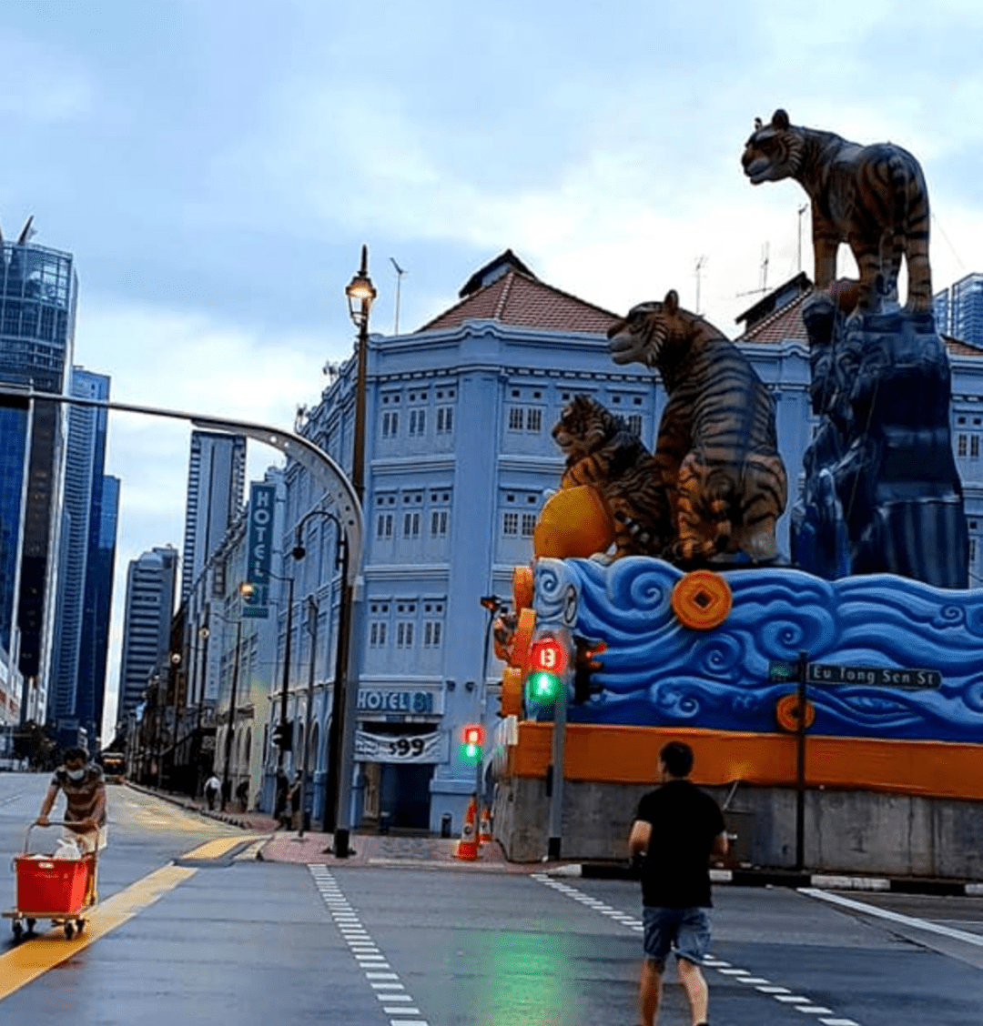 新加坡的牛车水的虎年招牌灯饰已经登场,年味儿越来越浓