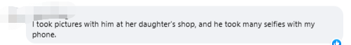 有跟许在他女儿店铺一起合照,本人还拿手机给拍很多张照片。
