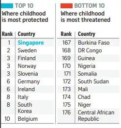 呀呀呀,椰子妈咪隔着屏幕都想捏脸感叹萌娃乖巧可爱的同时也意识到新加坡安全环境也为萌娃保驾护航~毕竟新加坡“养娃胜地”美誉不是浪得虚名!【1】2019年的世界NGO组织报告在176个国家中,新加坡位列第一是“最适合儿童成长的国家”而亚洲挤入前十的国家只有新加坡和韩国来源:st【2】2018年的Save the children发布的 《儿童终结报告》中新加坡被评为 最适合孩子成长第一名图源:Save the children官网【3】新加坡孩童拐带案很少,甚至没有近10年来新加坡没有一起儿童拐带案!图源:摄图网如今,新加坡10-11岁小孩就是小四之后都是自己去上学大多搭校车,少数坐巴士或地铁、步行很少看到家长们紧张接送就直接反映了新加坡养娃的一个安全性!宝爸宝妈们,你们怎么看呢?评论区留言跟椰子妈咪一起聊聊~