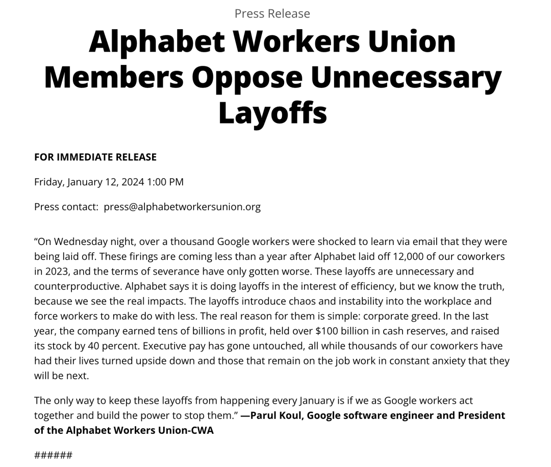 谷歌今年的裁员从1月10日开始,就陆续解雇了1000多名员工。