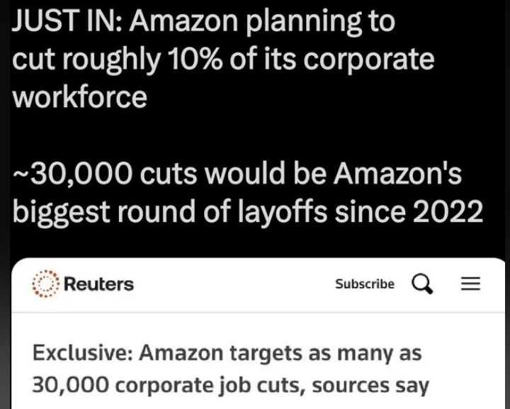 刚刚,亚马逊宣布将在全球范围内裁掉约 3 万名公司职员。