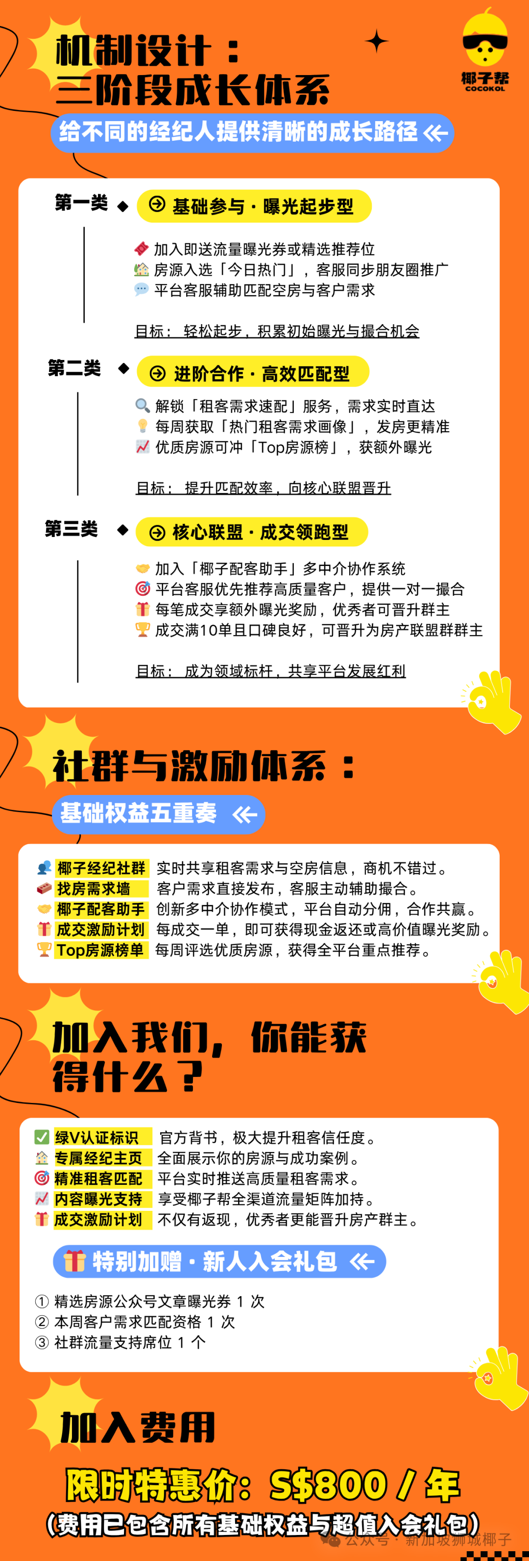 通过椰子帮平台与社群体系,实现房源信息共享、租客需求撮合、成交激励闭环,让你告别单打独斗,进入协同作战的高效模式。