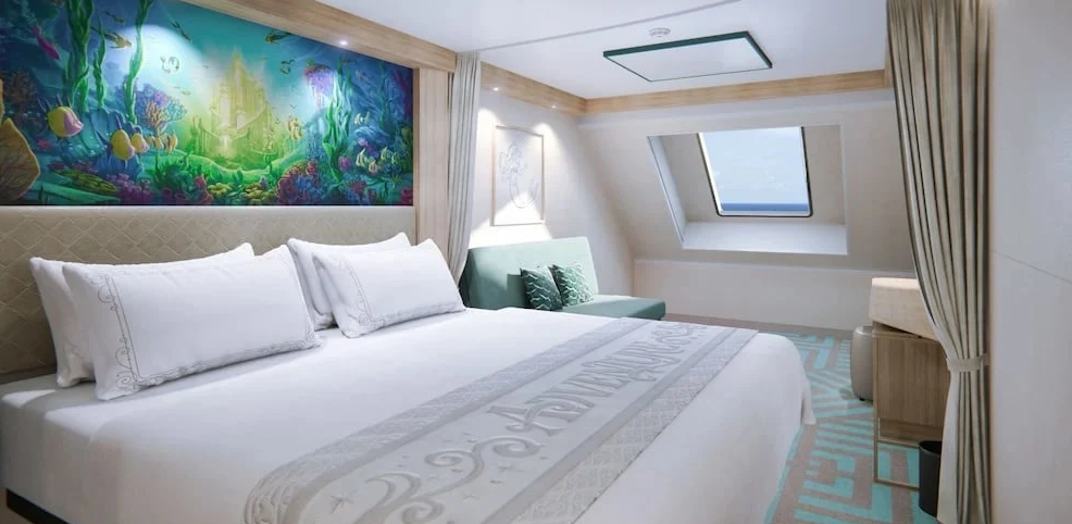 迪士尼冒险号游轮有多种房型可选:大家庭可选Concierge Royal Suites,含客厅、餐厅、双卧室及双浴室;朋友出行可选至多容 5 人的Concierge Suites。