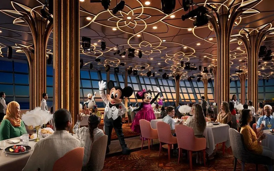 迪士尼冒险号游轮不普通,可容纳 6700 人,有 2500 个迪士尼角色,客舱、7 大互动区均有迪士尼等元素,还有表演、儿童活动与俱乐部。