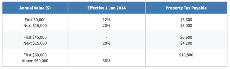 从去年1月1日开始,新加坡对这部分房产税税率做出了调整。以下是适用于2026年自住房产的税率: