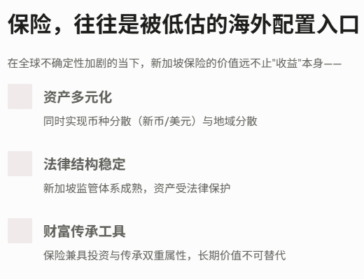 在全球资产配置的大趋势下,越来越多高净值客户开始关注新加坡保险——不仅因为监管稳健,更因为其在货币、收益与传承结构上的独特优势。