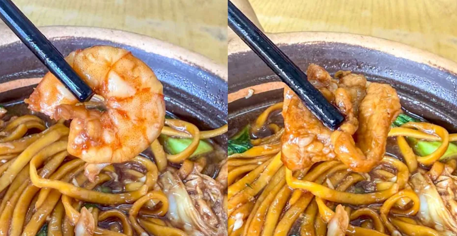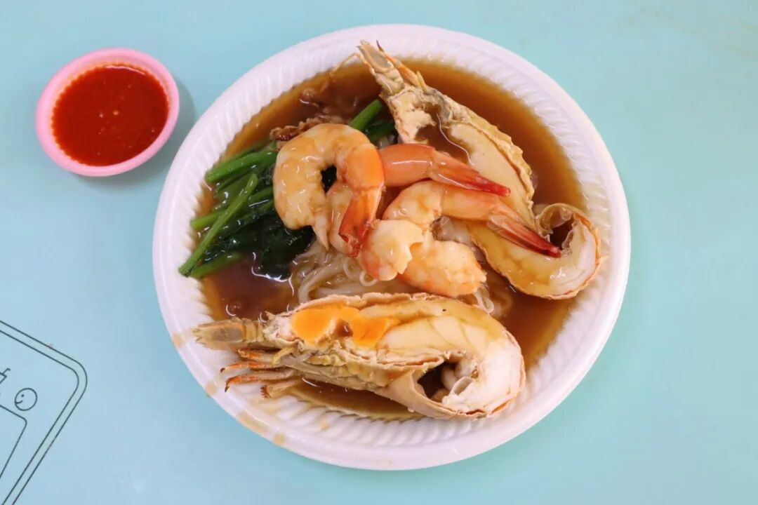 Crayfish Prawn Hor Fun 售 14 新元,含鲜对虾和整只龙虾,河粉爽滑裹浓鲜卤汁,配料丰富,鲜味十足,尽显地道怡保风味。