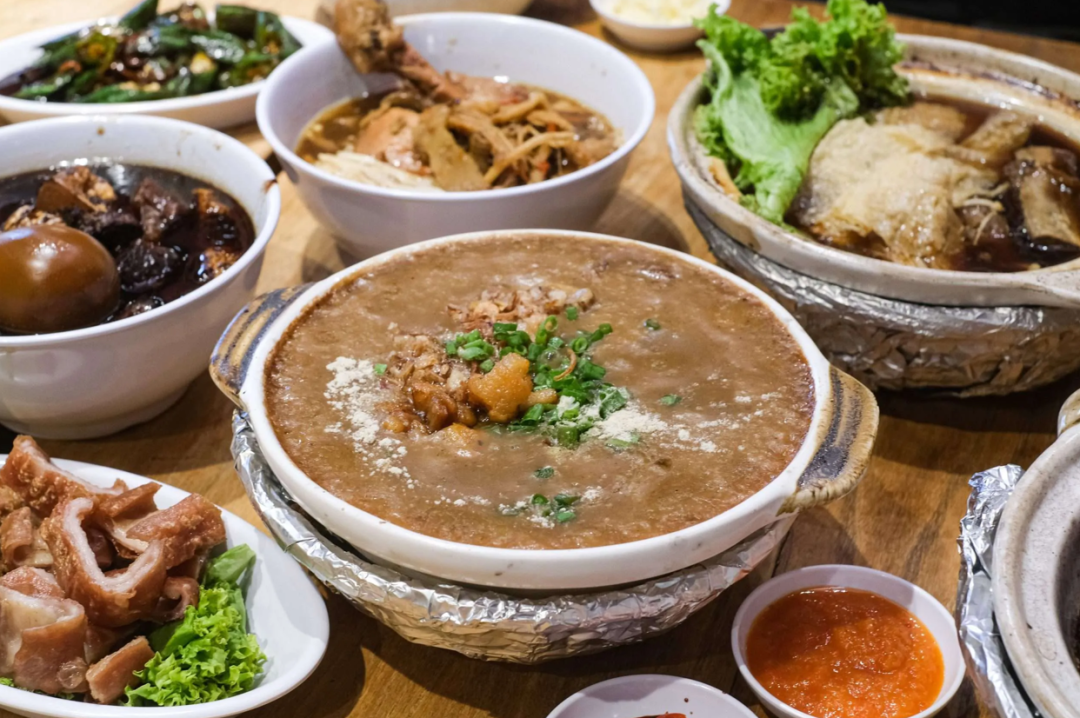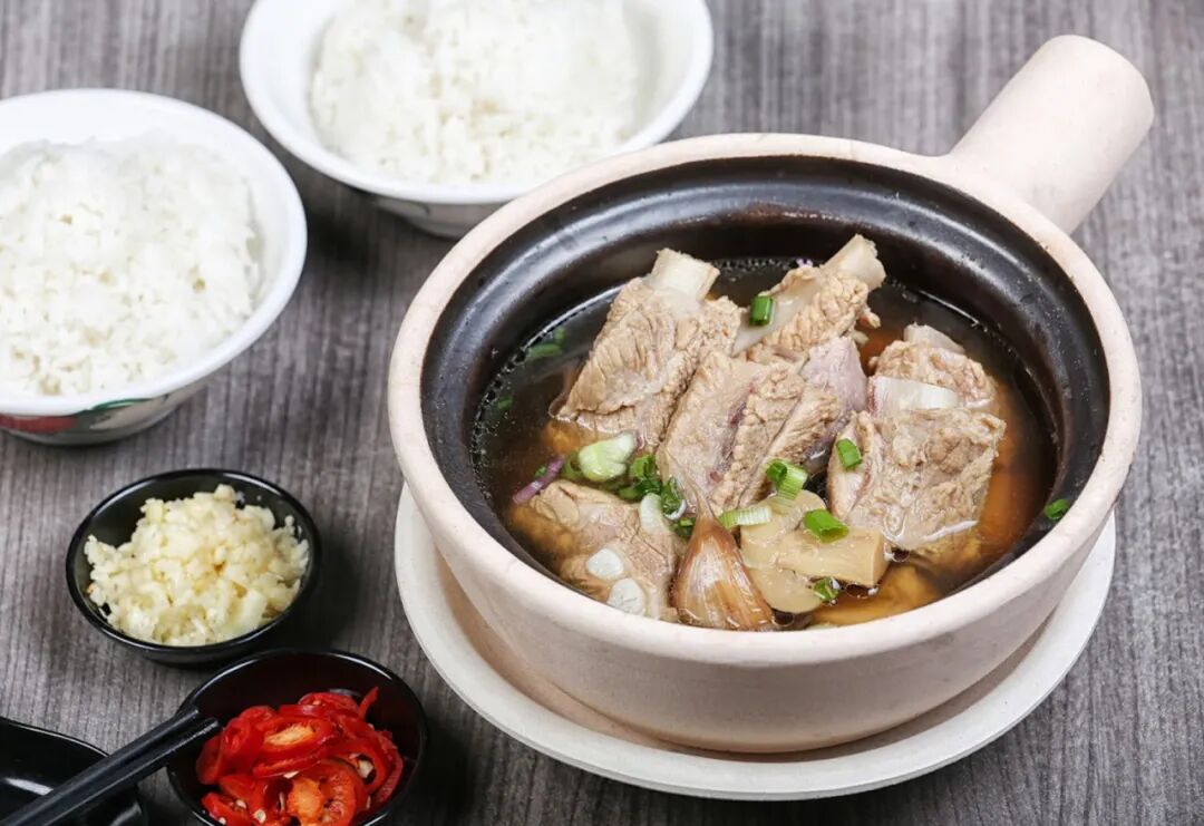 Signature Bak Kut Teh8 新元起,咸甜交织带草本香,多人同行可加 Sesame Oil Chicken(10 新元起)、Braised Pork Trotters(8.50 新元起),猪蹄软糯皮弹,必尝。