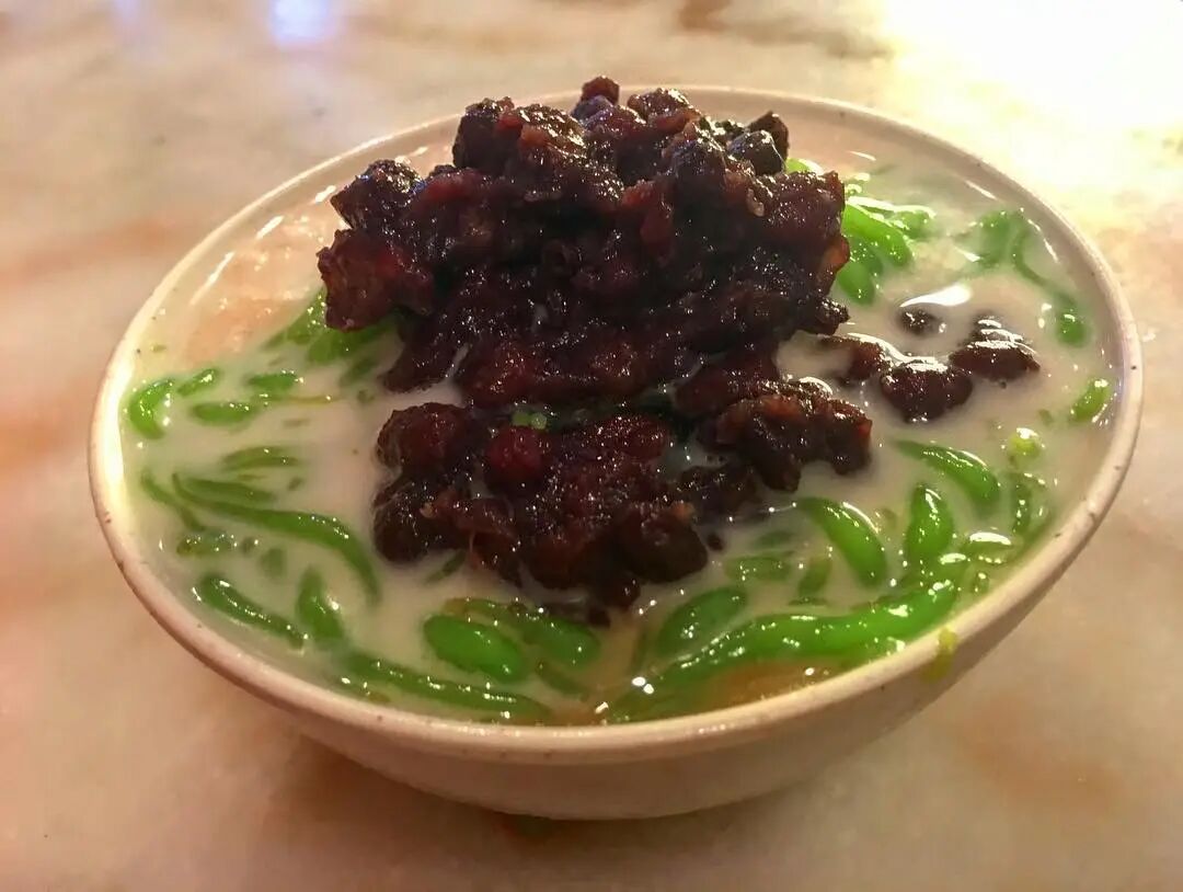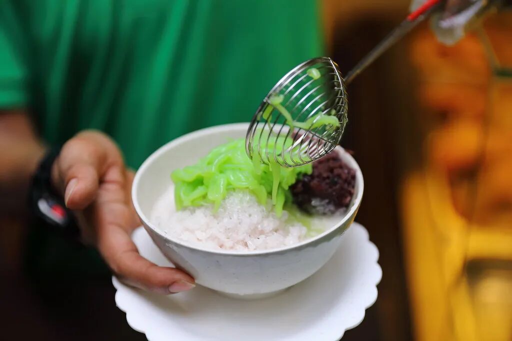 用马六甲椰糖、鲜榨椰奶制作,煎蕊条轻盈带班兰香,还可加红豆、榴莲等配料,每份 0.5-1 新元,还原地道风味。