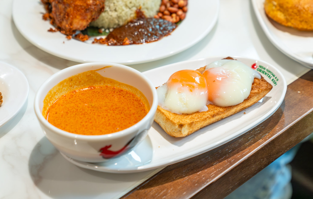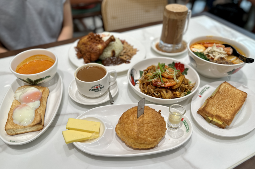 招牌 Oriental Signature Nasi Lemak(9.50 新元 ),含炸鸡、鸡蛋、香米饭等风味正宗,另有人气糕点 Oriental Polo Bun(4.60 新元)、Oriental Egg Tart(两枚 5.20 新元),搭配南洋咖啡,口感绝佳。