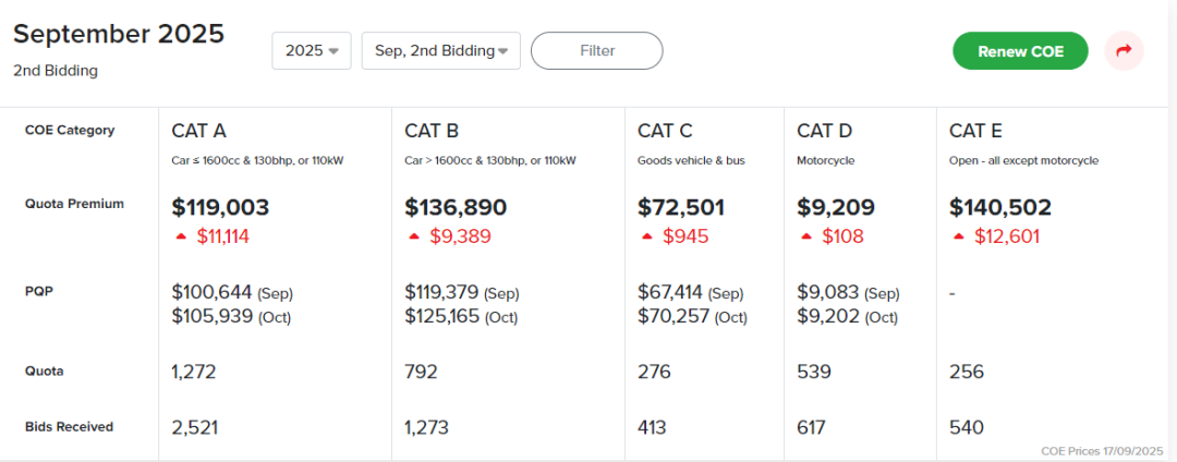 另外,买车时,你还需要为“全球最贵铁皮”——拥车证买单,10万新币以上的价格,会显著增加你的拥车成本。